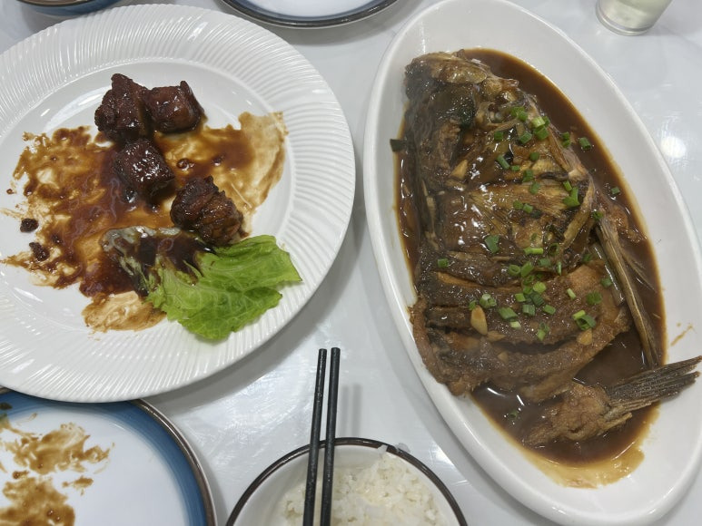 생선찜?이 좀 늦게 나와서 동파육 먼저 먹고있었음..ㅎ